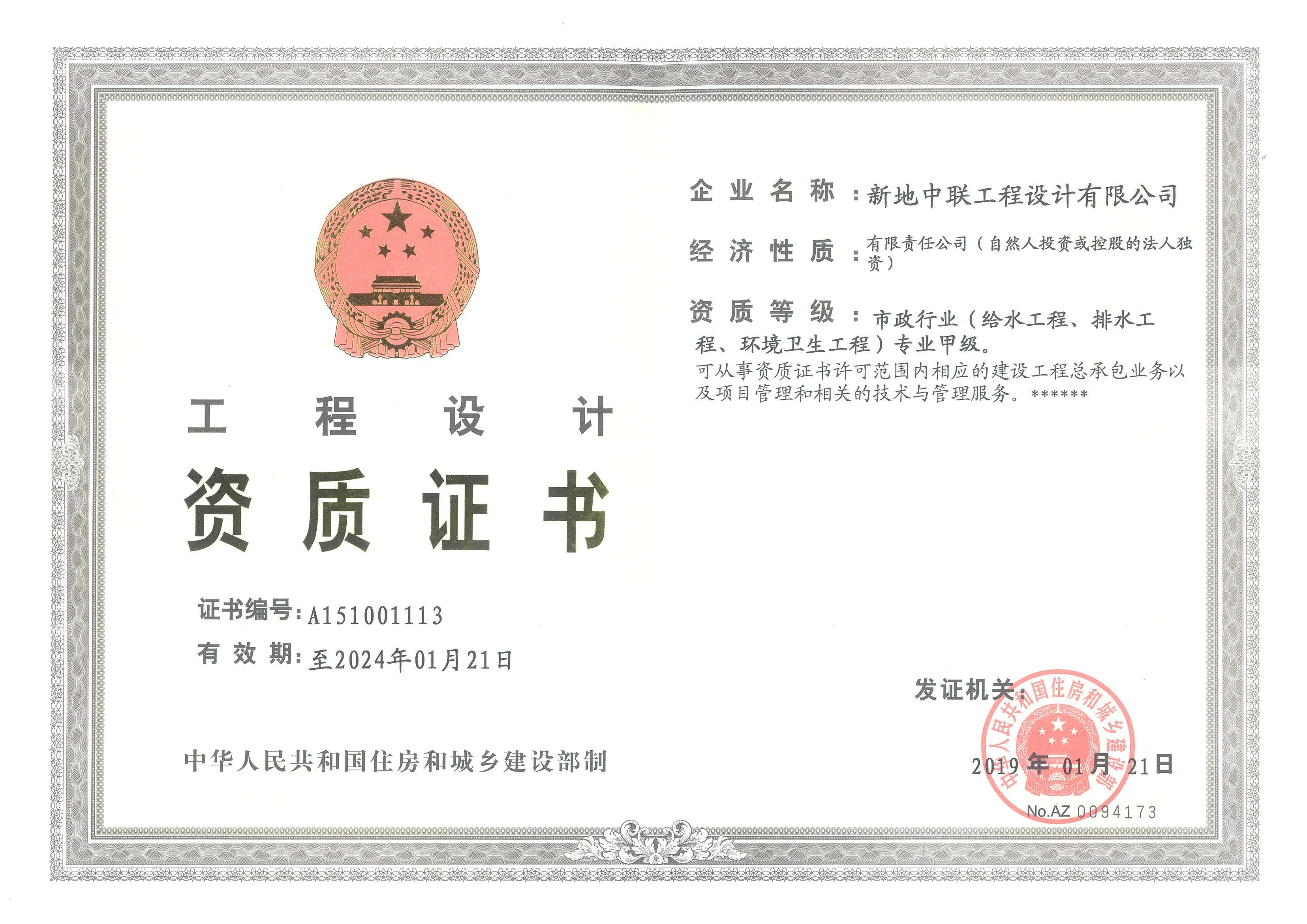 市政行業(yè)(給水工程、排水工程、環(huán)境衛(wèi)生工程)專業(yè)甲級 |